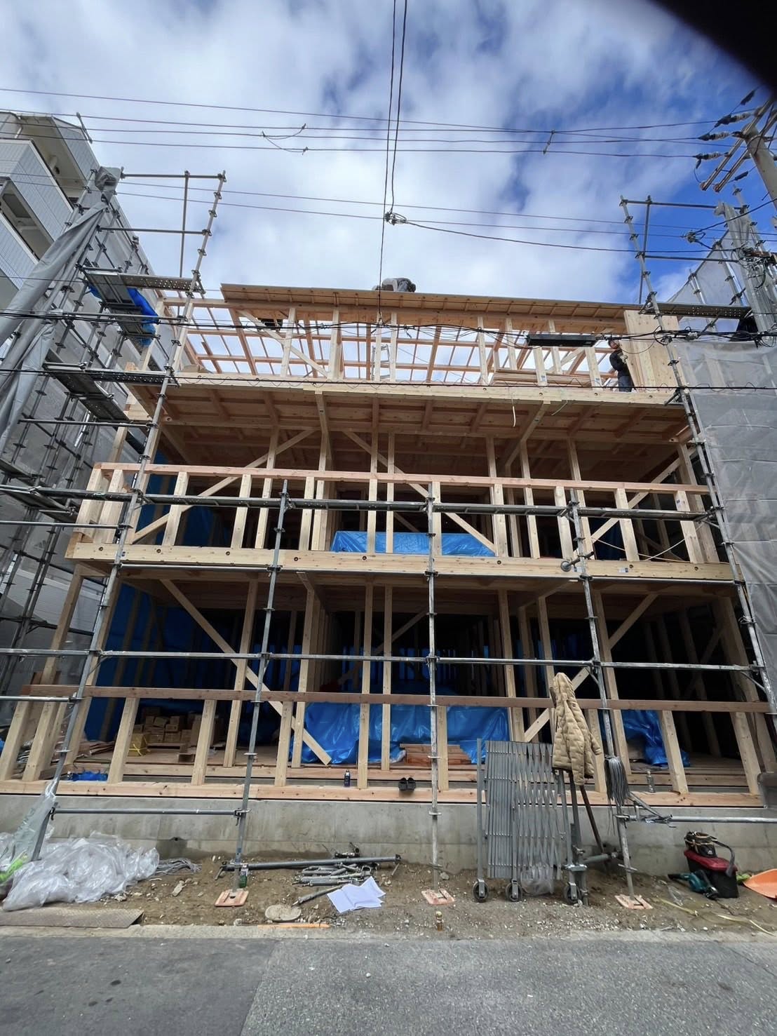 Blog, Information, News 不動産日記 建設中自社物件、「ラファミーユK 新大阪」進捗報告 by hokuyou 2025年12月25日 弊社自社物件、木造三層賃貸用住宅「ラファミーユK新大阪」が来年のオープンに向けて建設中です。 この間基礎工事をしていたと思ったらもう建物の外観らしきものが…。 詳細は年明け報告させていただきます。